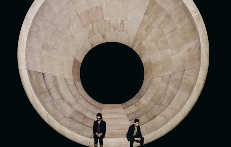 Чекајќи го Годо во изведбата на современици, Киану и Алекс, изгледа свежо. Сценографијата е само еден светол конус, фишек или корнет со отвор во средина. Ликовите се обидуваат да се качат нагоре кон врвот на големиот фишек, секогаш неуспешно. Дрвото го нема на сцената, туку Естрагон и Владимир го гледаат во нас, во публиката. На сред прв чин се појавуваат Поцо и неговиот роб Лаки. Поцо во мантил, страшен како да е негативец од Матрицата. Лаки немоќен, во инвалидска количка, не држи во неизвесност дали ќе му откажат кочниците и ќе се струполи низ корнетот во публиката. На крај на чинот детето доаѓа да им каже дека господин Годо нема да дојде денес. Ќе почекаат малку до утре.