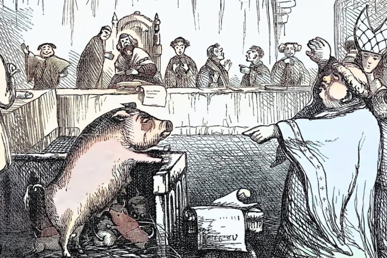 Историчарот Свен Гинс во текст на оваа тема објаснува дека средновековните свињи многу повеќе наликувале на диви вепри: биле брзи, силни и агресивни, а понекогаш јаделе и човечко месо. Затоа, кога ќе се случело убиство, животното често било третирано како да е човек – тоа било затворано, превезувано со кола и изведувано пред суд, со платен џелат и целосна правна постапка.
