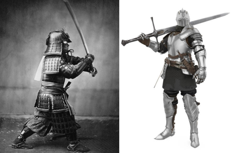 Брзина и агилност: самурајот е побрз и попрецизен. Иако витезот е добро заштитен, слабите точки на оклопот (врат, зглобови) би можеле да бидат погодени со брзи и прецизни удари.