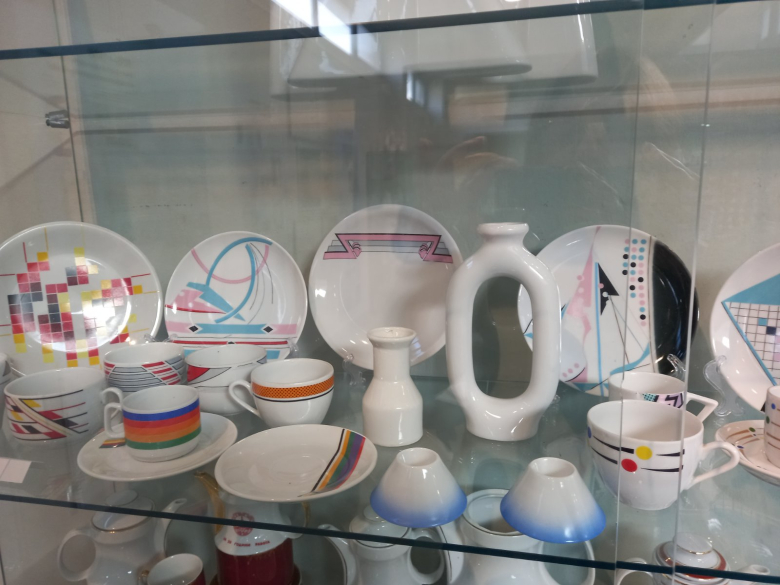 Се внимавало на тематско групирање на дизајните, па така декоратерката Ленче Тончова работела на серија играорци во стилизирана македонска носија, главно преземени од Албумот на народни носии од Олга Бенсон и Марија Малахова (за историјата на семејството Малахови слушни во подкаст епизодата од „Обични луѓе“ тука). Но дизајнерите, задоени во модернистички дух поради нивното образование во спомнатите центри, како и честите посети на саеми во Европа, имаат направено и дизајни кои и денес се толку свежи и оригинални, што го претвораат порцеланот во медиум на експеримент и интерпретација, балансирајќи на тенката граница помеѓу практичната употреба на конкретен предмет и скулптурата. Во ова предничи спомнатиот Терзовски, но и Војко Јаневски (фото долу), ученик на познатиот хрватски скулптор Вања Радауш. На него случајно наидовме на нашата посета - иако со нарушено здравје, на 85 години, тој делуваше горд на сработеното и тивко ги примаше комплиментите.