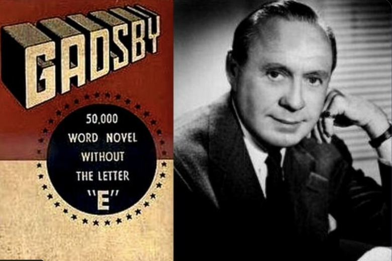 Станува збор за романот „Гетсби“ („Gadsby“ - нема врска со „Големиот Гетсби“) од Ернест Винсент Рајт, објавен во 1939 година. Во времето кога излегол, тој поминал речиси незабележано, но подоцна станал познат како необична книжевна појава. Почесто се спомнува како куриозитет отколку што навистина се чита. Авторот си поставил исклучително тешка задача: целосно да ја избегне буквата „e“, која е најчеста во англискиот јазик. Со тоа, тој морал да се откаже од многу основни зборови, вклучувајќи го многу честото „the“, како и од голем број заменки и граматички форми, особено оние во минато време што завршуваат на „-ed“, па дури и од одредени броеви.