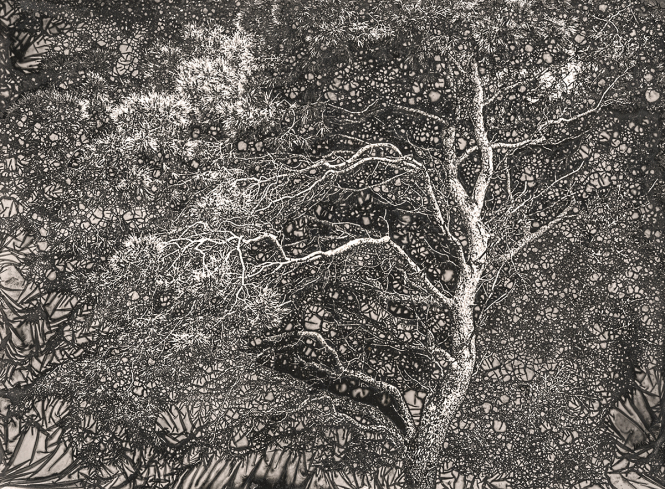 - Преку суптилна деконструкција на лисја, земја, камен и вода, сликите ја расплетуваат врската меѓу визуелното и физичкото. Материјата се претвора во знак, а фотографијата — иако фиксирана — упорно одбива да биде статична. Таа сведочи за својата ограниченост, нудејќи простор каде што претставата и реалноста се разидуваат.