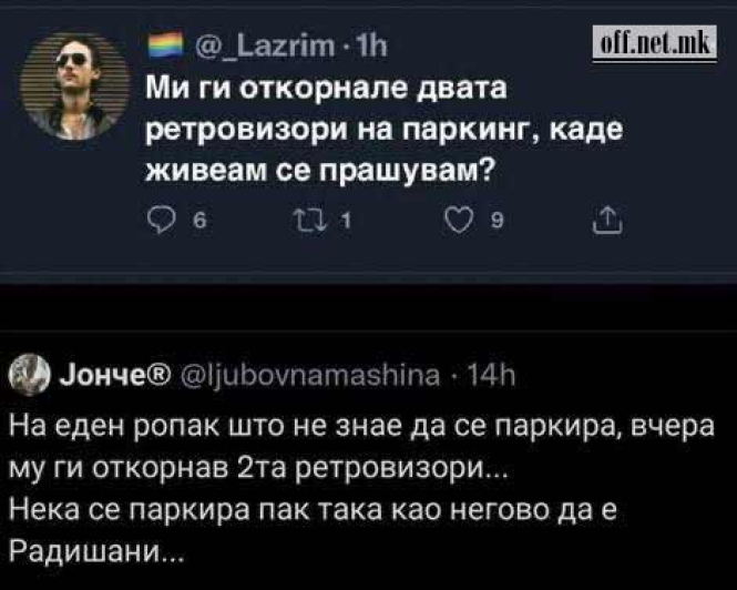 Квиз на македонска телевизија, двајца наши дечки треба да кажат извесен број континентални држави кои во името ја содржат буквата „с“. Имаат кажано 32 држави, треба да кажат 33. Им фали само една. Ништо, времето им истече. Водителот отпосле им вика дека победа можеле да однесат ако кажеле Северна Македонија.“А, не ја кажуваме неа“, викаат мангупите. Секоја факинг чест!