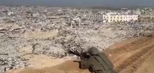 Од Втората светска војна, тешко дека некаде со камера е регистриран ваков призор на систематска и комплетна уништеност на едно населено подрачје. Па израелески војници уште држат и позиција на повисоките делови, со нанишените пушки, да не мрдне нешто случајно. Ако озгора е ваков ужас, можете да замислите како е долу, во самиот пекол.