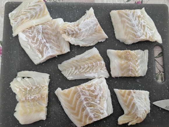 - 500 грама свеж бакалар, исчистен и исечен на парчиња