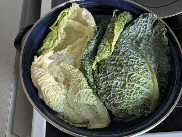 Одвој ги листовите внимателно. Попари ги или вари го во врела вода 10-15 минути за да омекнат, но да ја задржат формата.