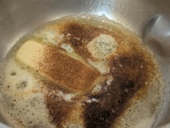 Во мало тенџере се топи путерот. Кога ќе почне да пени, се трга од оган и се додава црвениот пипер. Со оваа мешавина се полеваат јајцата, колку и безобразното тоа да звучи.