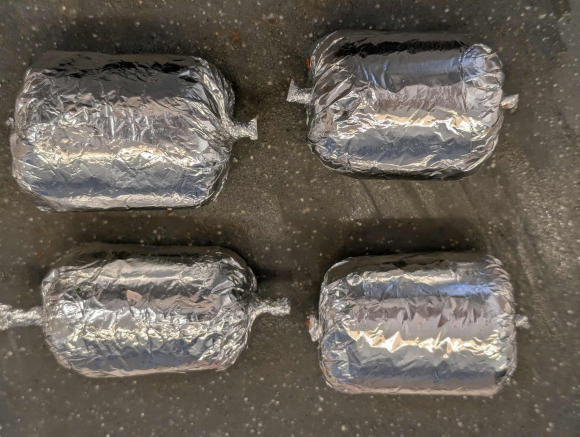 Секој пакет постави го на големо парче фолија и затвори го цврсто. Пара-воена операција.