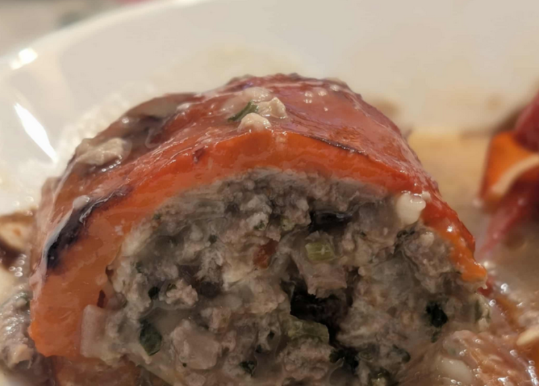 Земаш една излупена пиперка. Во средина ставаш месо и го моташ. Ако треба, додај уште парче од друга пиперка. Овие работи не се планираат, тука се импровизира.