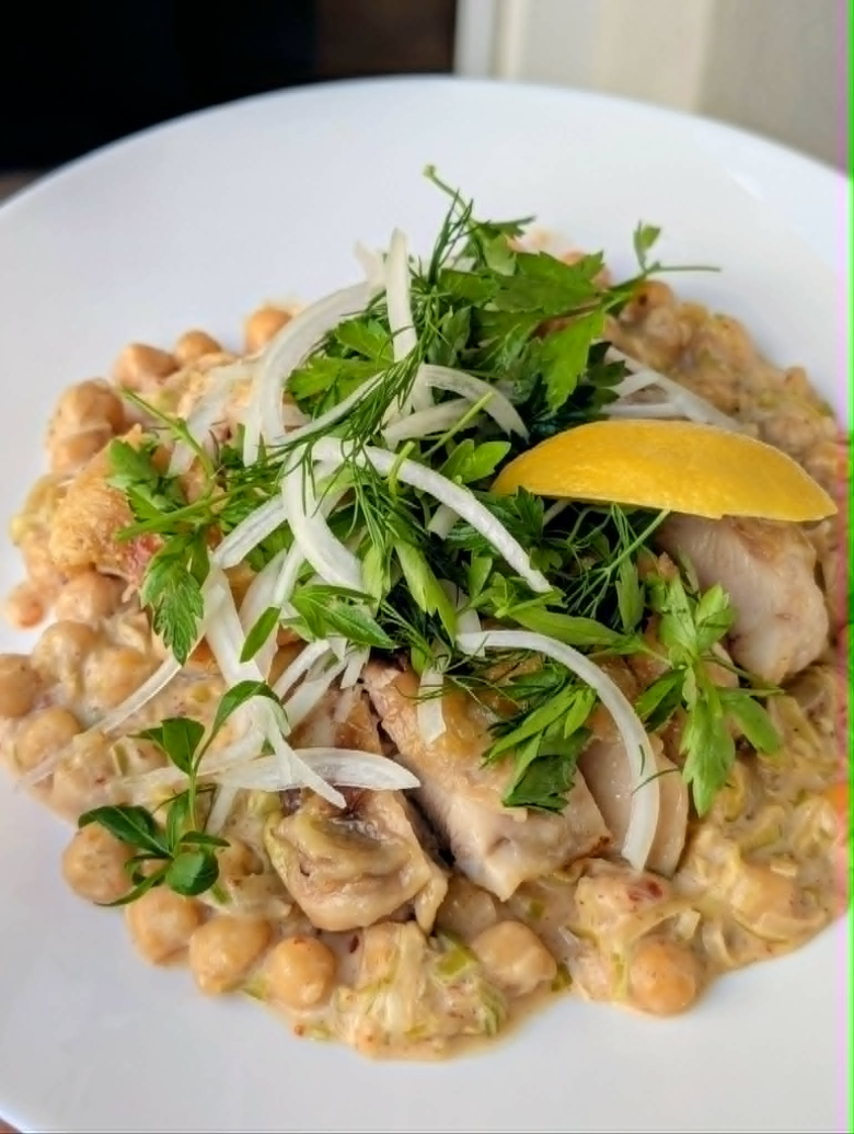 Ова што ќе го видите на сликите во продолжение е мини шамар на пластичниот прибор за еднократна употреба, во кој полека но сигурно се давиме. Неолиберализмот сака да поверуваме дека за софистициран оброк ни требаат часови и диплома од „Le Cordon Bleu“, но вистината е дека за само половина час, со една тава, може да се создаде нешто што е светлосни години пред секој „fast food“ франшизен дериват. Овој спој на крцкаво пилешко и кремаста леблебија и половина час посветеност на самите себе, ја враќа контролата врз сопствениот желудник и докажува дека достоинството на оброкот не мора да биде жртвувано на олтарот на ефикасноста.