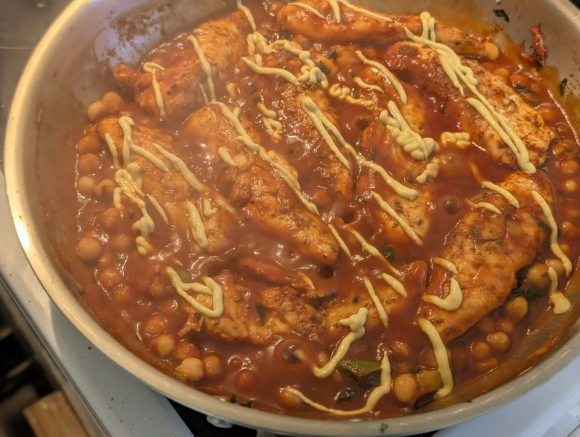 - Протеинска база: 600г пилешки филе (дотерано на ленти)
