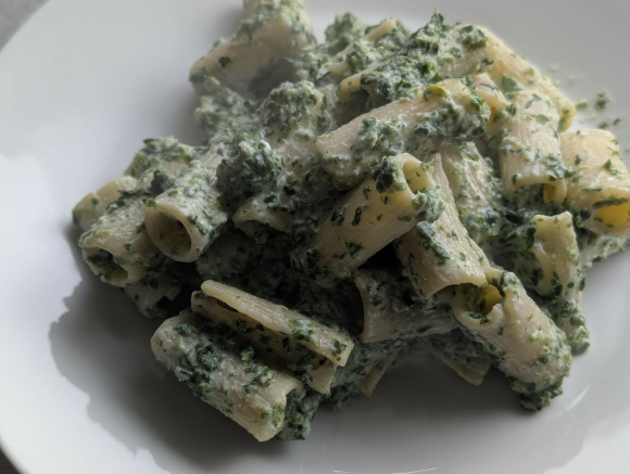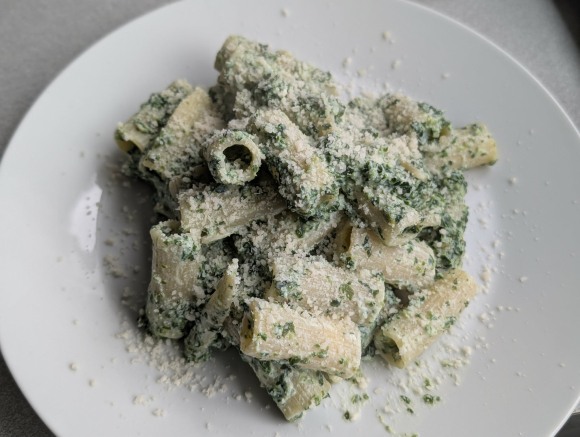 Веднаш потоа, инкорпорирајте ја во белата крема и додајте го зеленилото. Секој ригатон мора да биде целосно „згрижен“ и лојален на новиот сос.
