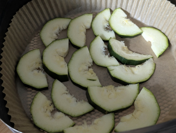 Ставете ги парчињата тиквичка во жешката рерна или фраер од сортата air. Тие мора да поминат низ сериозна трансформација додека не станат крцкави и цврсти во својот нов идентитет.