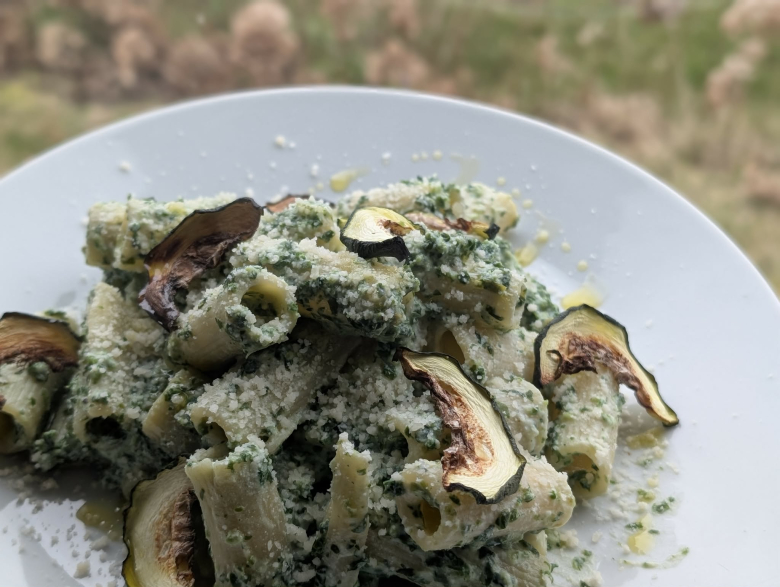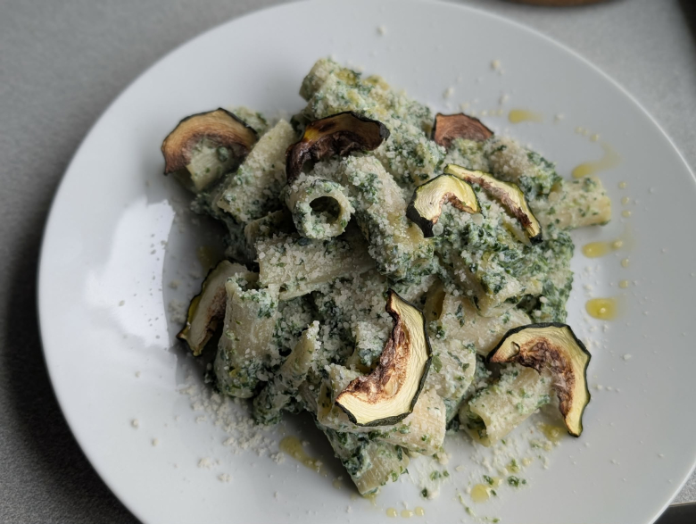 Сервирајте во длабока чинија. Посипете со дополнителен пармезан и наредете ги препечените тиквички како финални ордени за храброст.