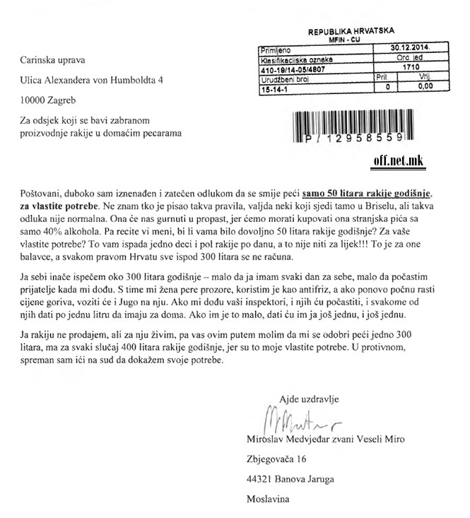 Локалности Балканштина Ракија ни за лек Хрват изненаден и разочаран од новите ЕУ регулативи по кои на индивидуалци им се дозволува да испечат само 50 литри ракија годишно за свои потреби. Свои потреби? Човекот е спремен да оди на суд за да ги докажува своите потреби. SharePostСподели SharePostСподели објавено: 24 март 2015 - 17:02