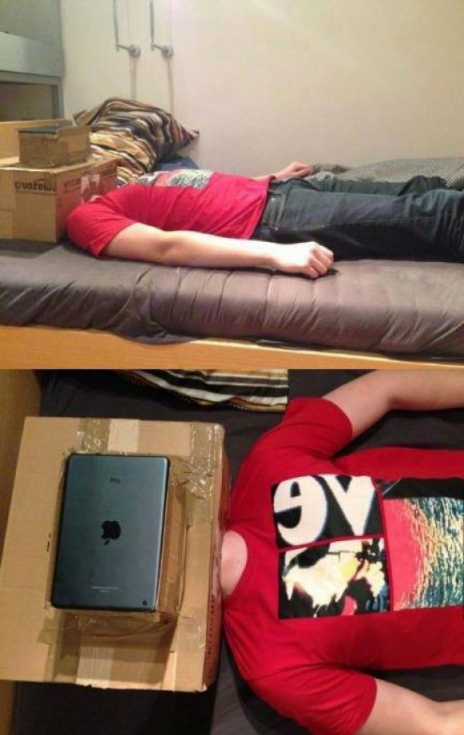 Локалности Балканштина Србите технолошки не претркаа Генијалниот ум смислил начин како во секој дом да се воведе атмосфера на кино сала и притоа да се ужива во филмо во легната состојба (што сугерира и извесна црногорска вмешаност во ваквиот патент). Потребна е само кутија и таблет. SharePostСподели Колку што сме информирани, следен предизвик е да се реши проблемот со јадење пуканки. SharePostСподели објавено: 25 декември 2013 - 12:35
