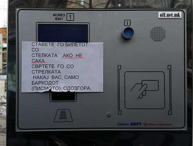 Локалности Македонштина Автомат со табиет SharePostСподели SharePostСподели објавено: 26 јануари 2015 - 16:52