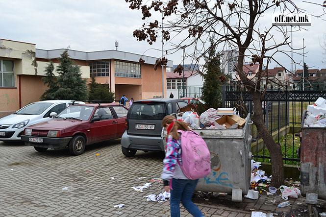 Откако го покажавме Фискултурно, да видиме како и на што личи околината на престижното скопско основно училиште Јан Амос Коменски. Оној вистинскиот Коменски живеел сред европските калакурници од 17-от век. Скопскиов (и учениците во него) поминуваат бетер.