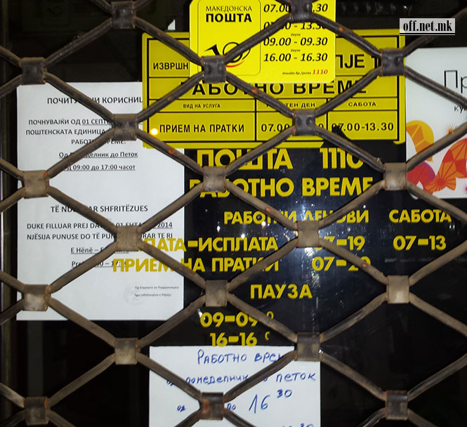 Локалности Македонштина Пошта: најди го работното време SharePostСподели SharePostСподели објавено: 21 јануари 2015 - 11:38