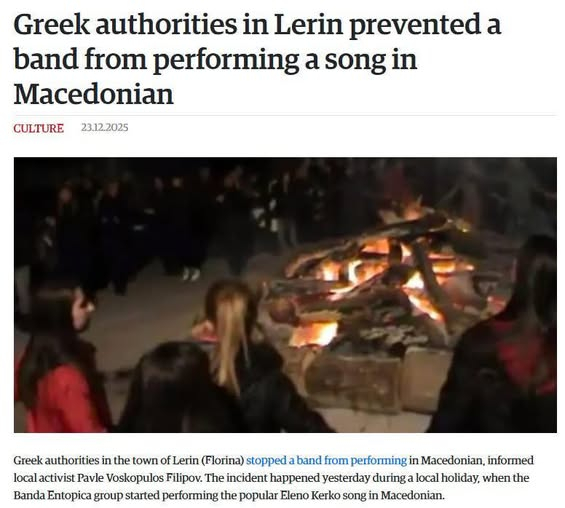 Скандалот се случил за време на коледарските празници во Грција, поточно на настан во Лерин кога градоначалникот сакал да ги забрани Банда Ентопика да пејат македонски песни на македонски јазик.