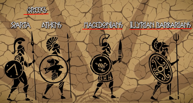 Фино раскажана историја на античка Македонија, пред Филип и Александар. Наспроти несомнените врски на нивните владеачки фамилии со хеленскиот свет, обичните Македонци биле сметани за туѓинци од страна на традиционално ксенофобните Грци. Херодот не ги опишува како грчко кралство туку како кралство на Македонците а Тукидит спомнува три главни групи во Пелопонеските војни: Грци (Атињани и Спартанци), варварски Илири и Македонци.