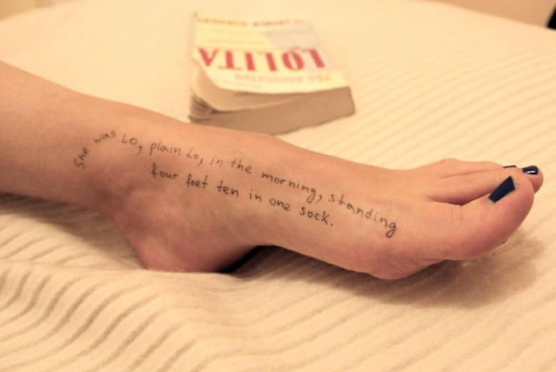 - На други слики се гледаат рачно испишани цитати од романот „Лолита“ напишани на делови од женски тела. Авторот Владимир Набоков во романот пишува за сексуална опсесија на маж со малолетно девојче.