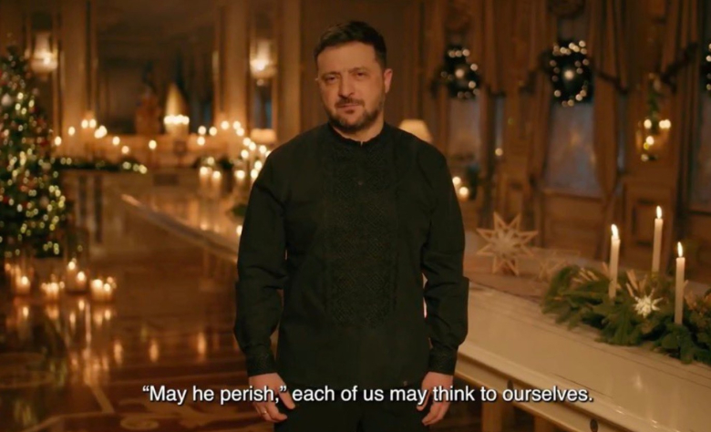 • Претседателот Володимир Зеленски во божиќната порака се помоли за мир во Украина, но и индиректно порача да умре рускиот претседател Владимир Путин, без лично да го спомне.