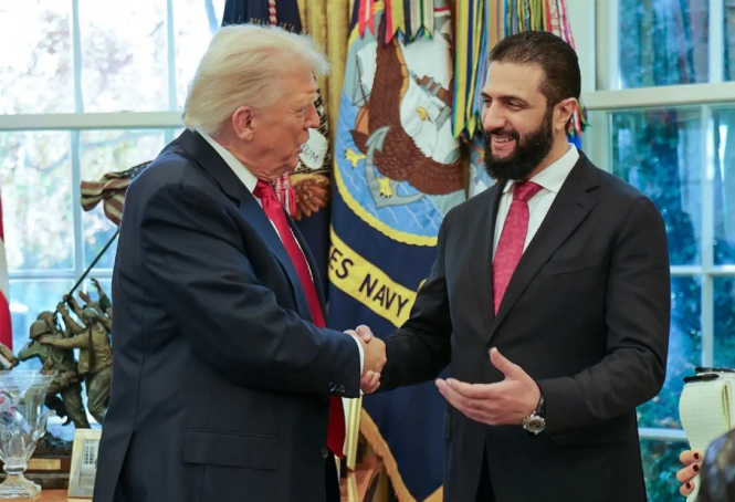 - Претседателот Доналд Трамп неодамна ги укина санкциите за Сирија и го пречека во Белата куќа привремениот претседател Ахмед ал Шара, кого САД до неодамна го сметаа за терорист и по него имаа распишано потерница со награда од 10 милиони долари.