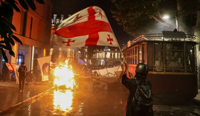 - Петмина организатори на нападот врз претседателската палата во Тбилиси во саботата се обвинети за поттикнување насилство заради соборување на уставниот поредок. Грузискиот премиер Иракли Кобахиѕе бара „специјална одговорност и од Брисел, откако амбасадорот на ЕУ Павел Херчински ги поддржа протестите.