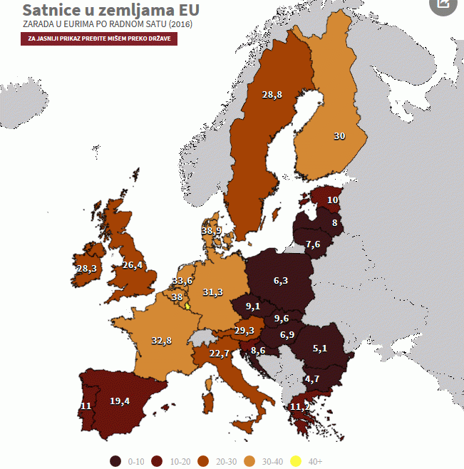Саат време во ЕУ: од 4 до 44 евра
