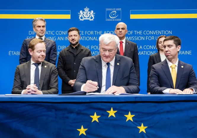 • Советот на Европа формираше Меѓународна комисија што треба да ѝ обезбеди на Украина компензација од стотици милијарди долари за штетите од руските напади и наводните воени злосторства.