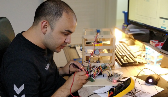 Стеван Костоски и неговиот робот кој мести Рубикова