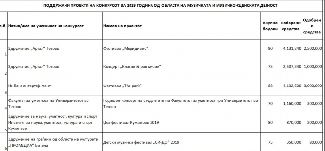 Таксират, Авалон и скопскиот џез извисија, ама затоа тетовски џез и здружение „Елизиум“ добиваат на цена