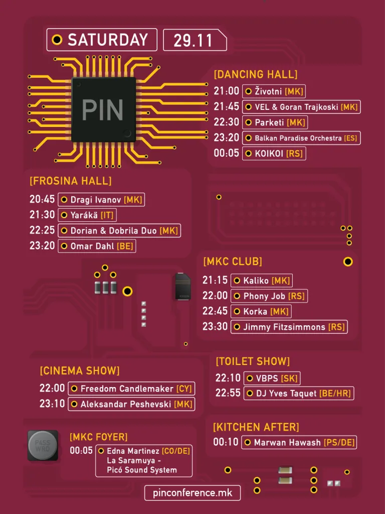 - Со слободен влез за сите посетители, на ПИН 2025 ќе се одржат концерти на вкупно 55 музички артисти кои ќе настапат на 6 сцени во МКЦ, како и конференциска програма со над 30 панел-дискуии, презентации, предавања и работилници со повеќе од 400 учесници, музички професионалци, уметници, претставници на фестивали, клубови, медиуми, културни институции, кои пристигнуваат од над 30 земји ширум светот.