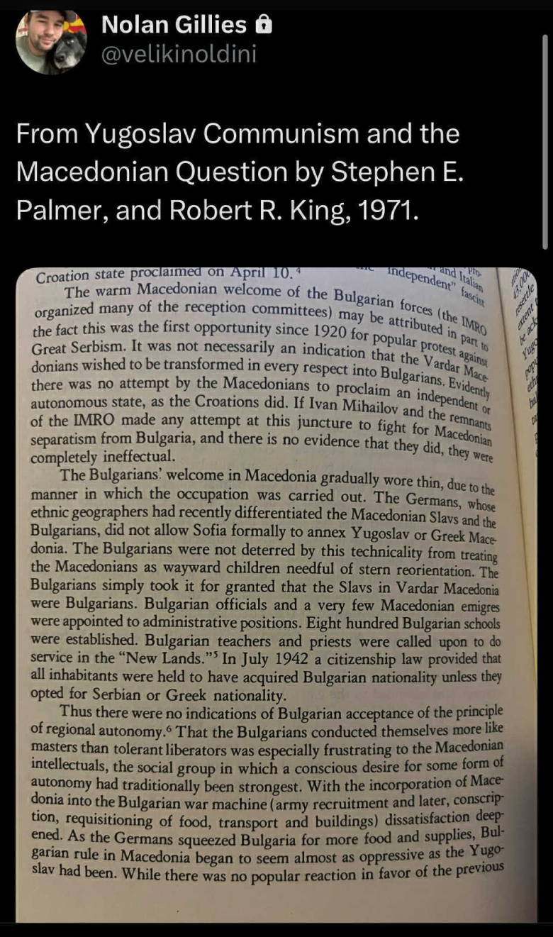 Од „Југословенскиот комунизам и македонското прашање“, Стивен Палмер и Роберт Кинг, 1971 година.