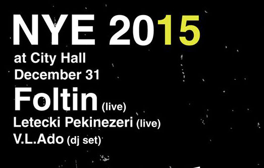 Дочекајте ја Новогодишната ноќ на најзабавниот настан кој ќе се одржи во City Hall Center во Скопје. Еден од најзначајните македонски бендови на последниве две децении ФОЛТИН и најпопуларниот скопски џез свинг состав ЛЕТЕЧКИ ПЕКИНЕЗЕРИ, ќе свират концерти за највозбудлив и незаборавен дочек на Среќната Нова 2015та година! Ноќта ќе ја заврши скопскиот и семакедонски диџеј В.Л.Адо!