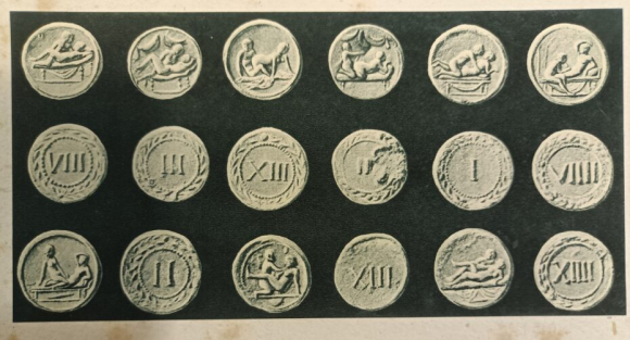 Денес, да држиш ваков жетон во рака е како допир до некое друго време. Потсетува дека и во епоха на строги морални кодекси и империјални амбиции, индустријата на задоволството имала своја инфраструктура. А сепак, не ја измислиле Французите оваа пракса - корените водат до Антички Рим, каде што постоеле spintriae - мали бронзени или месингани жетони со број на едната страна и еротски сцени на другата. Историчарите расправаат дали понекогаш служеле и како жетони за бањи или игри на среќа, но нивната визуелна содржина јасно укажува на нивната главна намена. Принципот бил ист: стандарди, контрола и пред сè - дискреција.