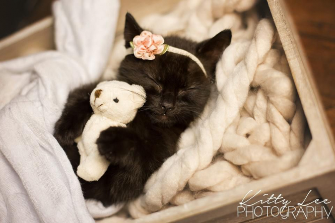 Мачето на видеото се вика Рози. Фотографката вика дека ако сликање бебе бара 2-3 саати, со маче се трошат само 45 минути.