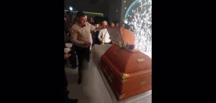 Огромна торта долга најмалку два метра, од неа излегува бел дим, околу неа пршти огномет а во салата свири оркестар. Личи на класична балканска теревенка само што во случајов, тортата е во облик на мртовечки сандак а оркестарот е оној што свири на погреби. Каде? Во Србија, нормално.