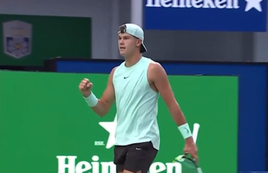 Холгер Руне е четвртфиналист на Мастерсот во Шангај, откако го елиминираше Мпетши Перикар. Французинот во вториот сет испорача екстра силен сервис со брзина од 235 км на час. Погледнете го одговорот на Данецот.