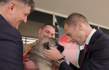 Претседателот на УЕФА, Александар Чеферин е во официјална посета на ФФМ, заедно со Зоран Лаковиќ, директор за национални асоцијации и Денис Бастари, раководител за развој на националните асоцијации. Меѓу подароците, доби и шарпланинец.