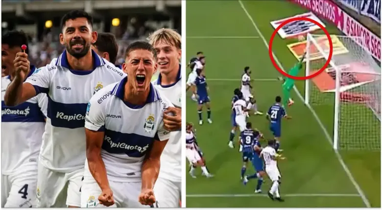 El gol olímpico de Nicolás Barros Schelotto ante Racing, desde la tribuna de Gimnasia.