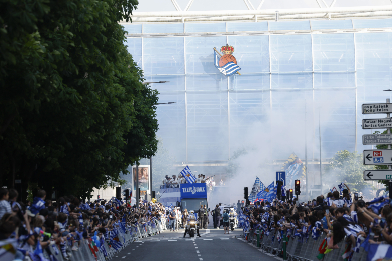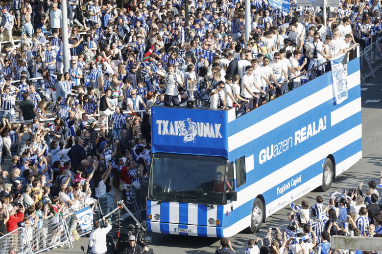 Отворениот автобус со играчи тргнал од стадионот на Реал Сосиедад, „Аноета“ и одел преку неколку булевари до главниот плоштад Сентенарио.