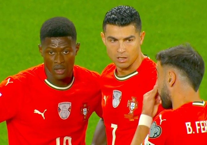 Offside Фудбал Друг пат на тренинг да ги договарате слободните удари Нуно Мендес, Роналдо и Бруно Фернандеш се договараа што да искомбинираат од прекин против Унгарија. Бруно се тргна, овие двајцава не знаеа кај тераат. SharePostСподели Португалија ремизираше со Унгарија, нови два гола на Кристијано Роналдо SharePostСподели Тагови: нуно мендес кристјано роналдо објавено: 15 октомври 2025 - 09:06