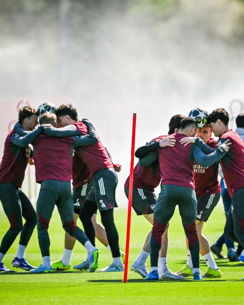 🚨 Mikel Arteta had Arsenal's players working group focus and balance exercises with pens and balls before their Champions League match against Sporting. 👀