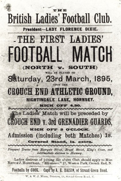 Така се родила Британската женска фудбалска лига, прва во историјата. Триесетте играчи биле поделени во два тима: еден од Северен Лондон, „црвените“, и еден од Јужен Лондон, „сините“. Историското прво дерби се одиграло на 23 март 1895 година, во Крауч Енд, при што Северот победил со 7:1.