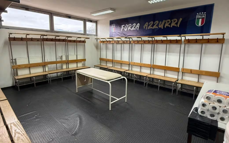 Le immagini dello spogliatoio dello stadio Bilino Polje di Zenica che ospita l’Italia nella finale dei playoff per i Mondiali 2026 contro la Bosnia-Erzegovina. Gli spazi sono molto ristretti e lontani dagli standard ai quali sono abituati i calciatori della Nazionale. La vasca… pic.twitter.com/Gn3lYQP65Q