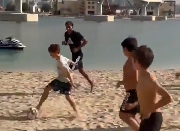 Offside Фудбал Јамал им се уфрли на деца на партија фудбал на плажа Младата ѕвезда се наоѓа во Дубаи, каде времето не е тиња како кај нас. Топло е таму, по кратки се шетаат. Велат дека сам им се придружил. SharePostСподели SharePostСподели Тагови: ламин јамал објавено: 26 декември 2025 - 09:57