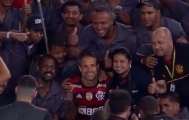 Капитенот на Фламенго, Диего Рибас, ги собра чистачите на стадионот Маракана, да го овековечат освојувањето на Купот на Бразил со фотографија, која сигурно ќе се памети. Јак момент. Не паметиме дека му текнало на друг.