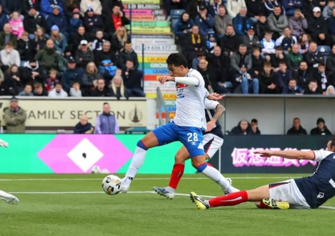 Две недели откако го постигна деби голот за новиот клуб во Лига Купот против Хиберниан, Бојан Миовски за прв пат стрелаше за Ренџерс и во шкотската Премиер лига. Македонскиот напаѓач во 41 минута го отвори резултатот на гостувањето против Фалкирк, но гостите израмнија на 17 минути до крај.